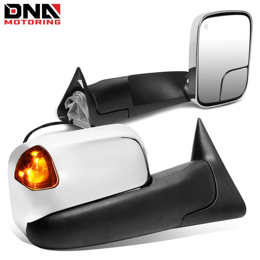 DNA MOTORING Pair Chrome Power Heated LED Turn Signal Side Towing Mirror Compatible with Dodge Ram BR/BE 98-02