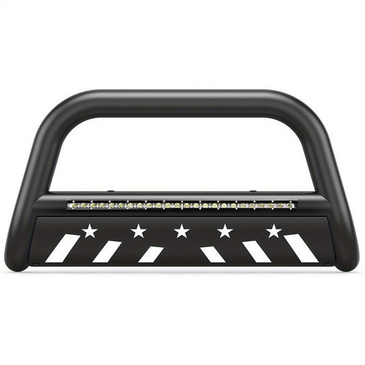 Led Bull Bar for Frontier 1500, MERXENG Bull Bar with LED Light Brush Push Front Bumper Grille Guard With Skid Plate, 3" Push Bar Tubing Grille Guard Replacement for Frontier 2005-2021