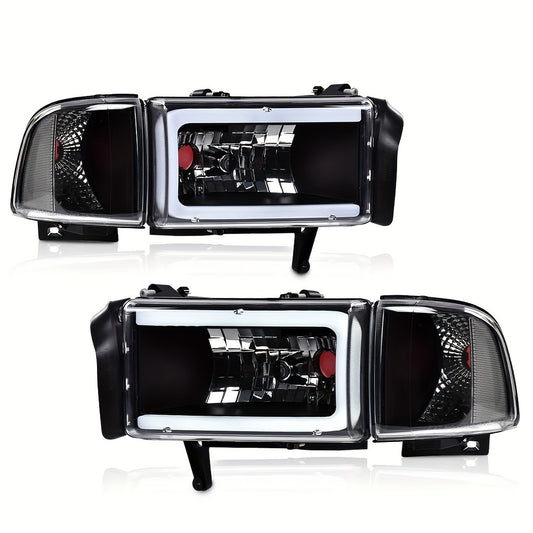 LED Light Strip Headlight W/o Bulbs Fit For Dodge For Ram 1500 1994-2001 For Dodge For Ram 2500 For 3500 1994-2002 Clear Lens Black Housing Clear Reflector