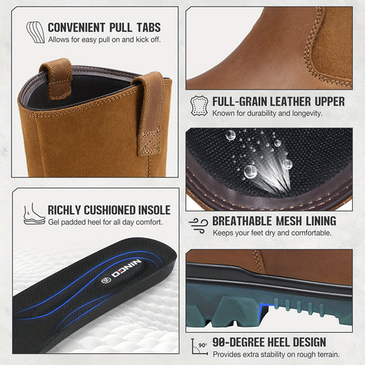 NINGO Steel Toe Work Boots For Men Women, Waterproof Wellington Boots With Full Grain Faux Leather, Oil & Slip Resistant, High Rebound TPU SR Outsole Safety Boots, Pull On Work Boots For Construction, Farming