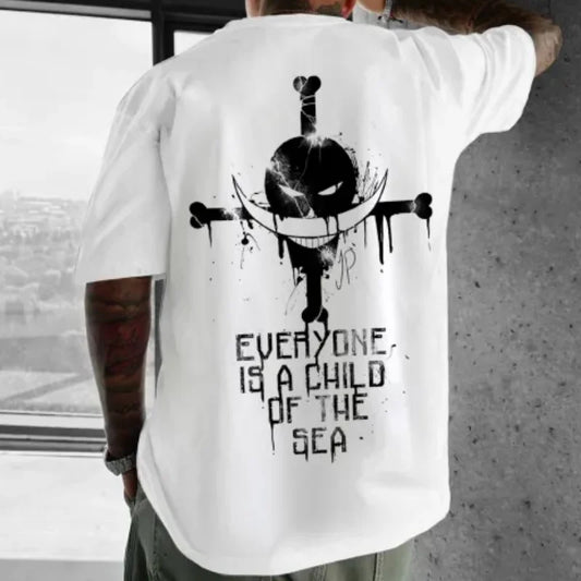 New Y2K Style Skull Metal Print Harajuku Retro Street Style Men's T-shirt Printed Casual Round Neck Short Sleeved T-shirt