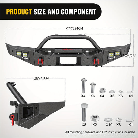 Nilight Front Bumper Compatible For 2021 2022 2023 2024 Ford Bronco With 4X18w Flush Mount LED Work Lights Winch Plate License Plate Bracket Sensor Hole