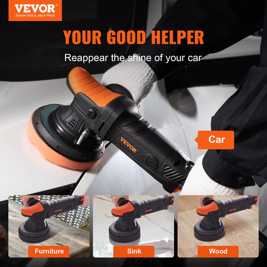 VEVOR Car Polisher 6 Inch Electric Variable Speed Dual Action Buffer Car Polishing Machine Kit with Detachable Handle Power Tool