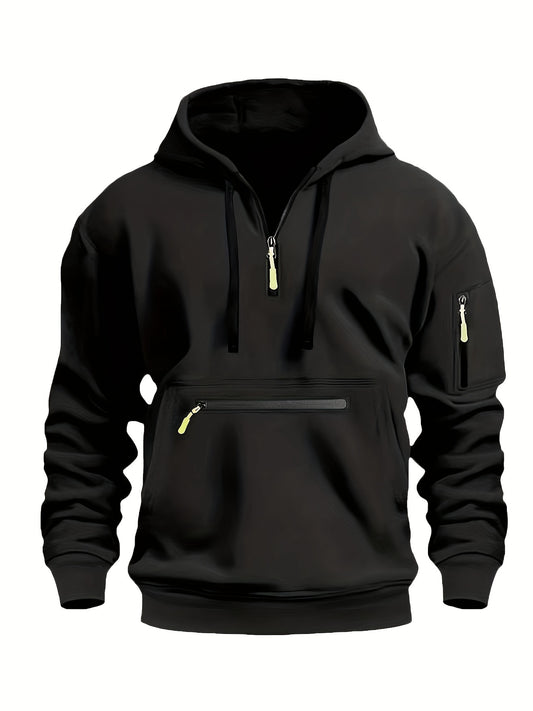 Winter Fall Essential Hoodie - Fashion Hoodies for Men with Solid Half Zip, Long Sleeve, Zippered Pocket, Casual Style