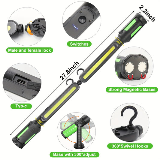 [Rechargeable COB LED Work Light] 2pcs Rechargeable COB LED Work Lights - Portable Underhood Work Light Bar with Hooks - 4400mAh Lithium Battery