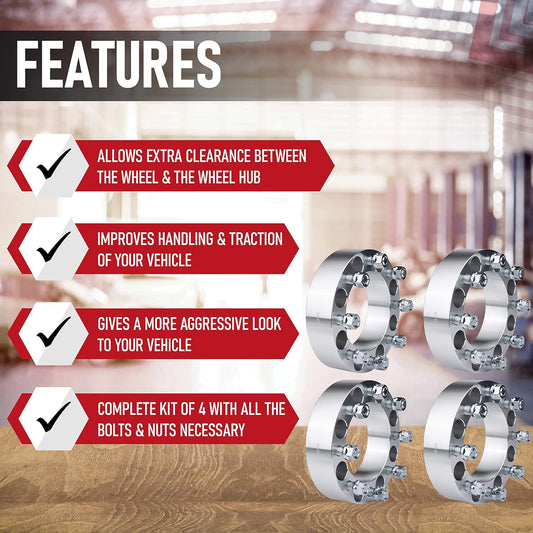 Wheel Spacer Set of 4-8X6.5 Bolt Pattern - 8X165.1Mm Lug Centric 130Mm Bore - 9/16-18 Studs 2 Inches Thick - Compatible with Dodge and Ford Trucks - 1994-2011 Ram 2500, Ram 3500, 88-98 F-250, F-350