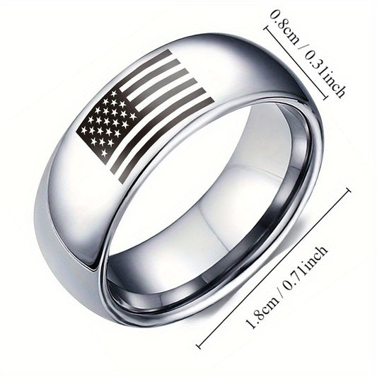 2Pcs 8mm Black Silvery Ring for Men American Flag Stainless Steel Wedding Rings Domed Polished Finish Band for Engagement Anniversary