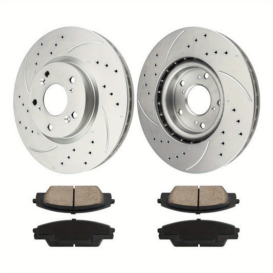 31381+D829 Front Drilled and Slotted Disc Brake Rotor and Ceramic Brake Pad Set Kit For Civic 2006-2011, RSX 2002-2006, brake pads and rotors kit, 6pcs