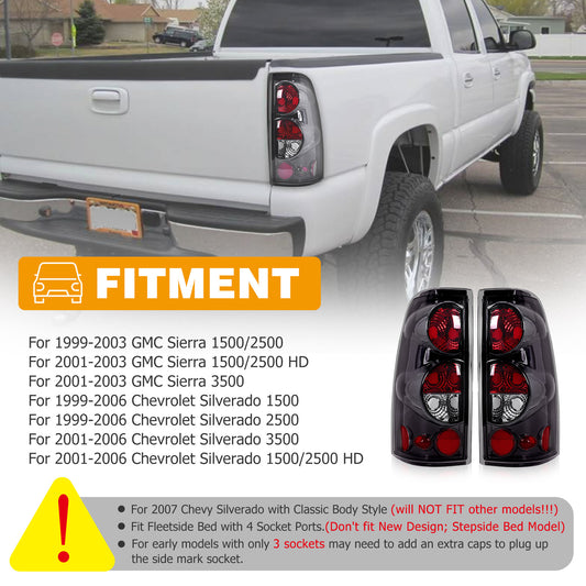 2PC Tail Lights For Chevy 1500 2500 3500 1999-2006 For GMC Sierra 99-03 Tail Lights