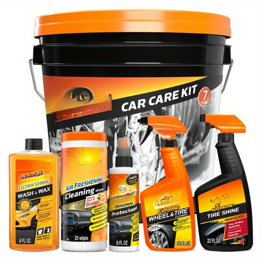 7-Piece Professional Car Cleaning Kit - Complete Interior and Exterior Care Set with Microfiber Cloths, Brushes, and Detergents for a Spotless Shine