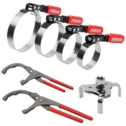 7pcs/set Stainless Steel Adjustable Oil Filter Wrench Set, 2-3/4" - 5-1/4", 9" & 12" Oil Filter Removal Tool with Adjustable 3-Jaw Pliers