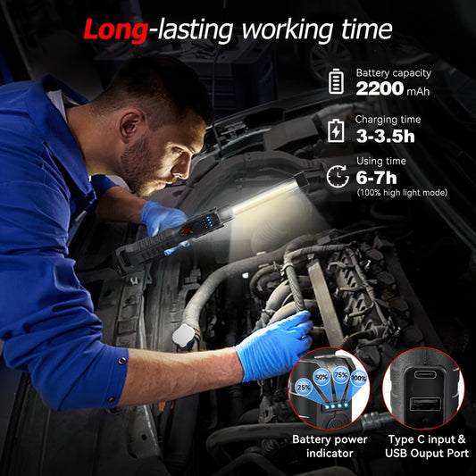 7 Lighting Modes High Lumens Rechargeable Work Light Magnetic Flashlight, Portable LED Grill Light, Foldable Mechanic Hand Held Light for Men, Car Repairing Tool, Guy Gift