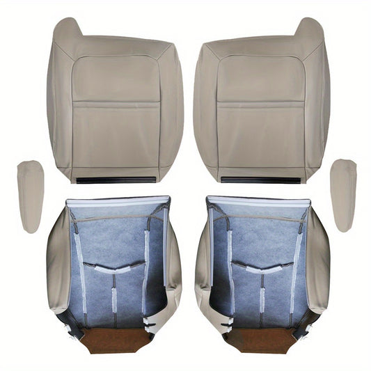 6X Light Tan Front Driver Passenger Side Seat Cover Artificial Leather Bottom & Lean Back Replacement for 2003 2004 2005 2006 Chevy Tahoe Suburban GMC Yukon