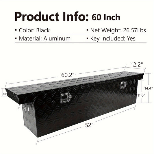 60.2"(L) X 12.2"(W) X 14.4"(H) Pickup Truck Bed Tool Box Trailer Tool Box For Bed Of Truck, Aluminum Stripes Toolbox For Truck RV Tralier, Chrome Latch, Black Surface