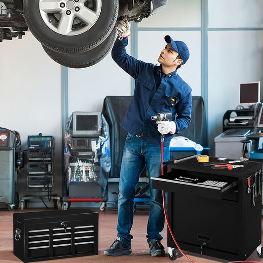 8-Drawer Metal Lockable Tool Chest Cabinet with Wheels, Black Storage Drawer Units, Rolling Tool Storage Box