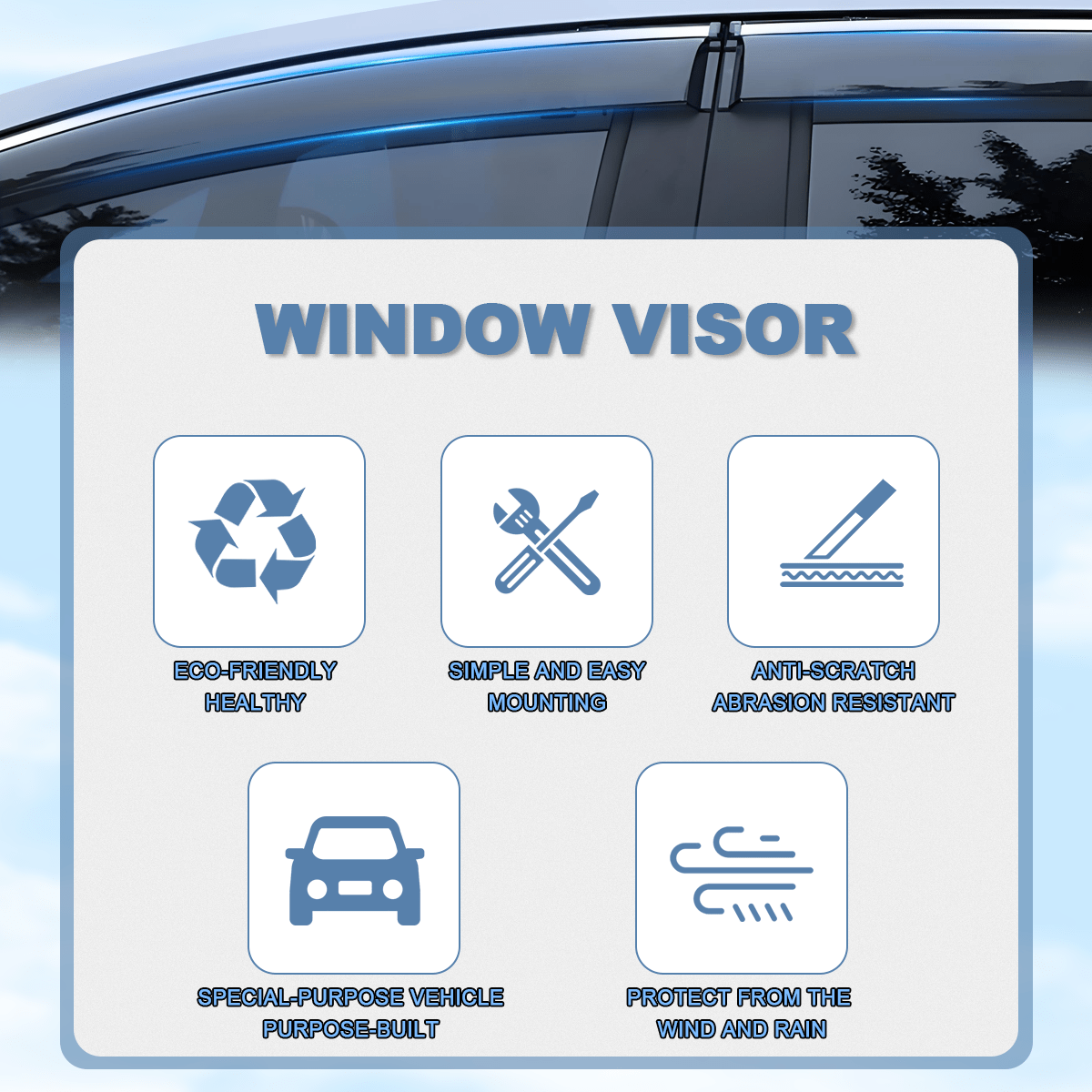 · Brand:Celepoir Features:Easy Installation, No Drilling Required, Waterproof Color:Smoke Black Package Included:4 Piece Set of Window Visors Type:Window Visor Fitment Type:Direct Replacement Material:Acrylic, White Iron Vehicle Fitments:For Chevrolet For Silverado 1996-2006 For GMC For Sierra 1996-2006 Placement on Vehicle:Front, Rear, Left and Right of Windshield How to install:Self-Adhesive Universal Fitment:No