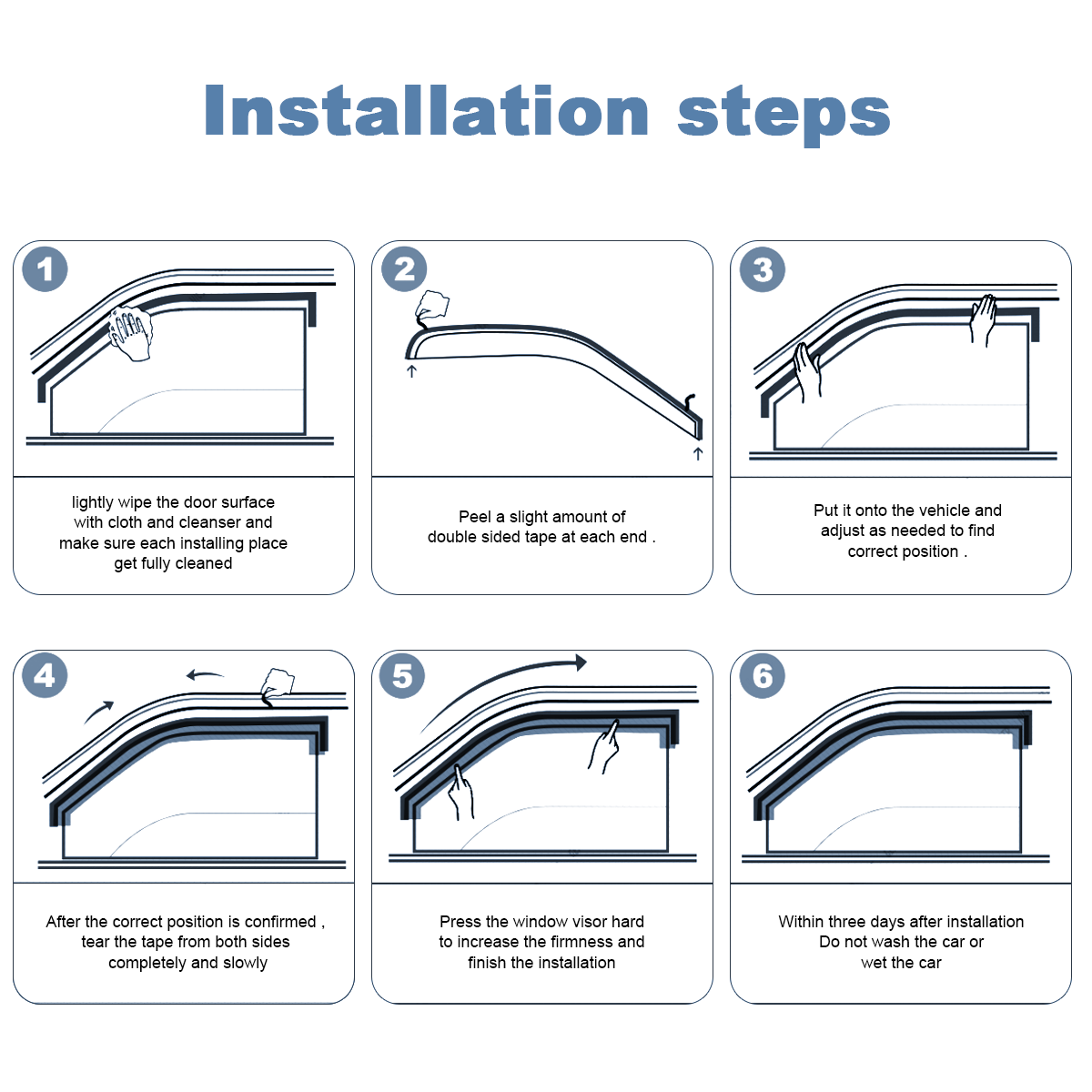 4 x Window Visors Installation steps and precautions: