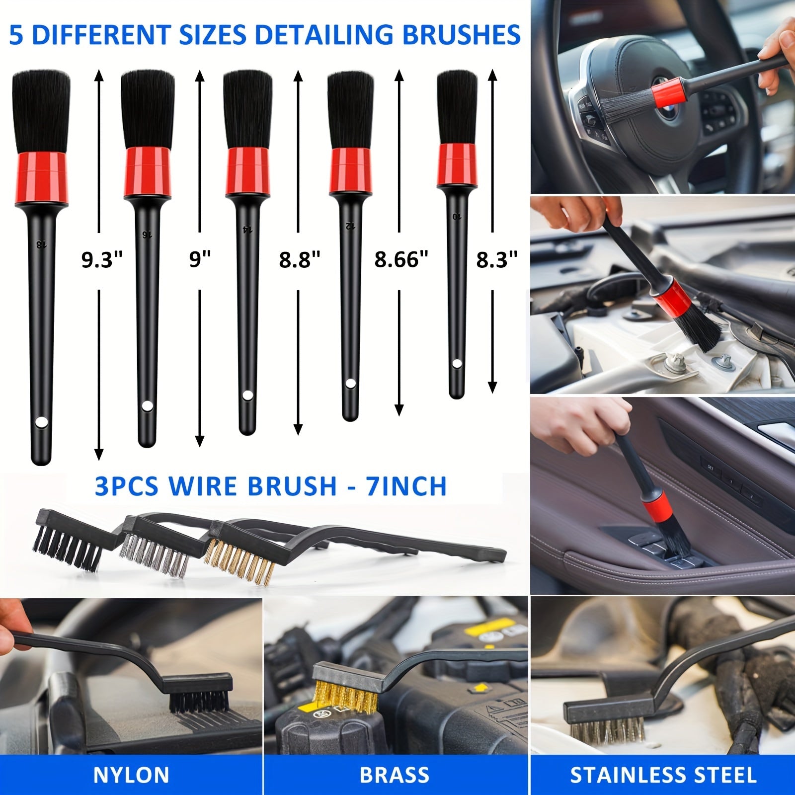 41pcs Car Wash Kit: 1x Collapsible Bucket, 1x Snow Shovel, 1x Large Wash Mitt, 1x Hub Brush, 1x Window Water Scraper, 1x Tire Brush, 4x Car Hooks, 1x Stone Clearing Hook, 2x Wax Applicator Pad, 6x Glass Washer Cleaning Pieces, 1x Car Vacuum With Auxiliary Connector, Crevice Nozzle, Extension Hose, Brush Nozzle, 1x Car Windshield Cleaning Tool, 5x Detailing Brushes, 3x Wire Brushes, 2x Absorbent Towel, 1x Cleaning Gel, 1×100 Ml Spray Bottle, 1x Air Conditioner Brush, 1x Duster, 1x Storage Bag