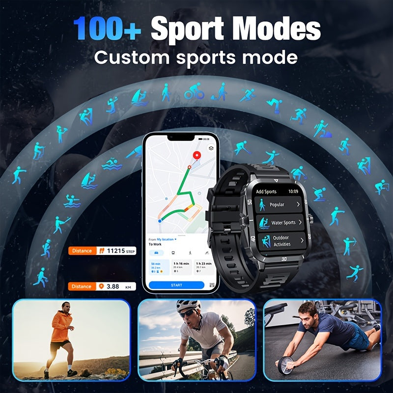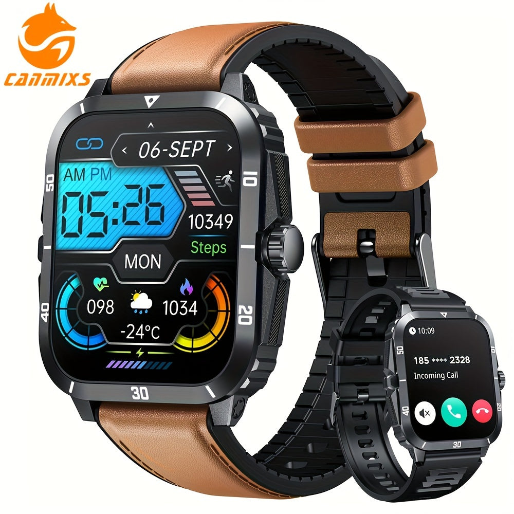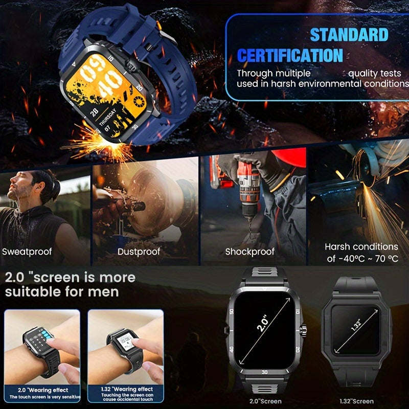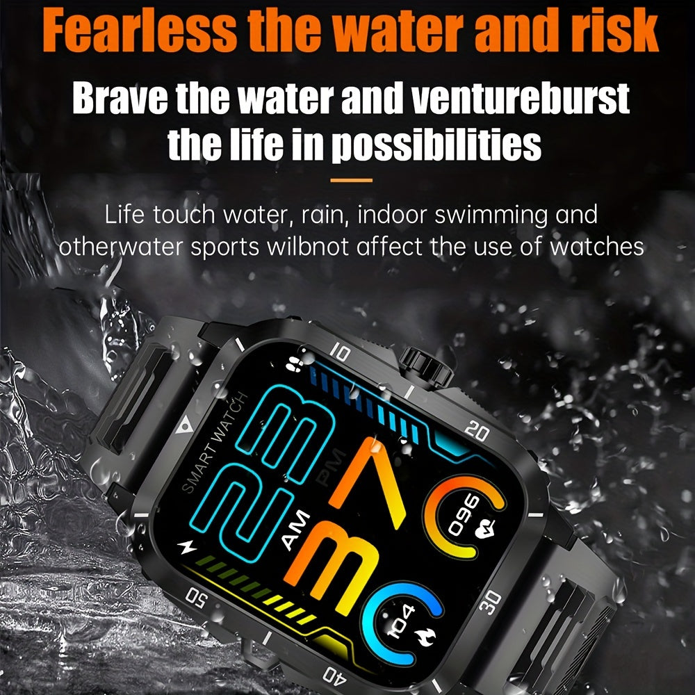 430mAh Large Display Smart Watch for Men - 1.96 Inch Wireless Calling, Fitness Tracking, Sleep Monitoring, Information Reminders, Step Counter, Calorie Tracker, Calculator, Camera Remote Control, Compatible with Android Devic