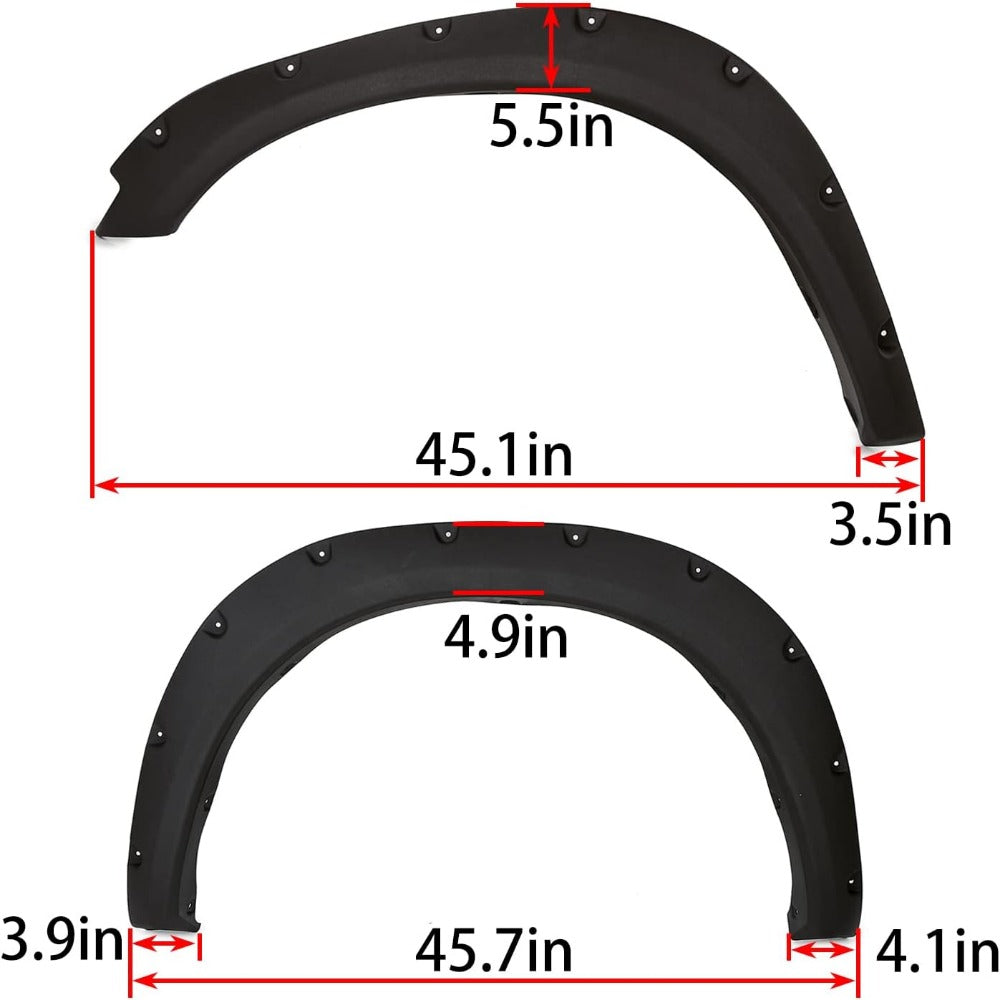 · PACKAGE INCLUDED: 4 pieces fender flare (2 for front and 2 for rear) and hardware. No Installation Instruction.