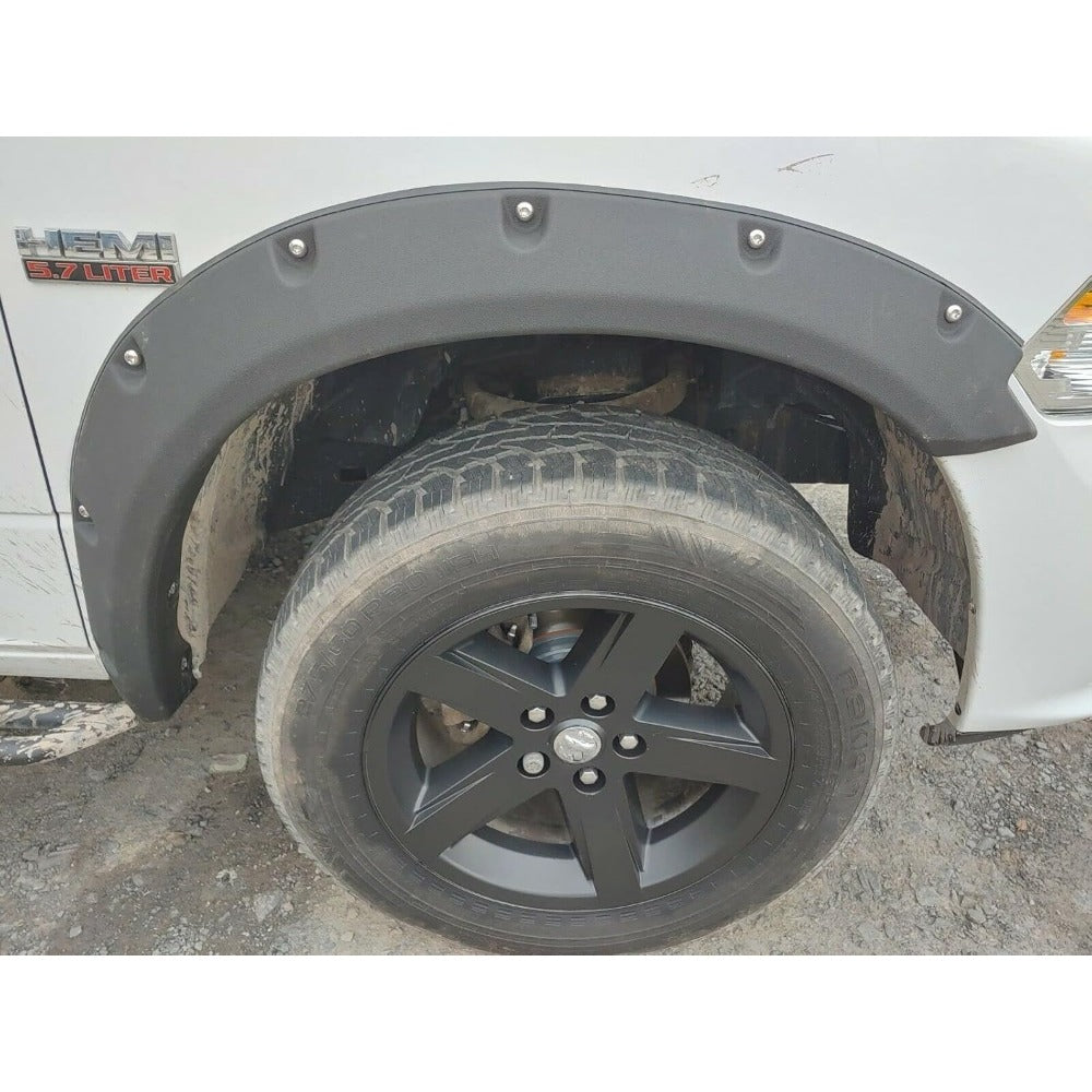 4Pc Fender Flares Compatible with 2009-2018 Ram 1500 Compatible with 2019-2023 Ram 1500 Classic (Exclude RT & Rebel Models) Wheel Cover Protector Black Pocket Rivet Style