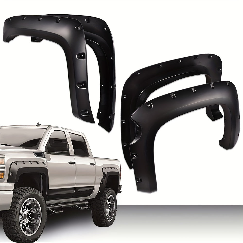 4pcs Paintable Riveted Pocket Smooth Wheel Cover Fender Flares for Chevy Silverado 1500 2007-2013 - Short Bed (5.8ft / 69.3") Only, Not Fit Long Bed Models, GMC Sierra