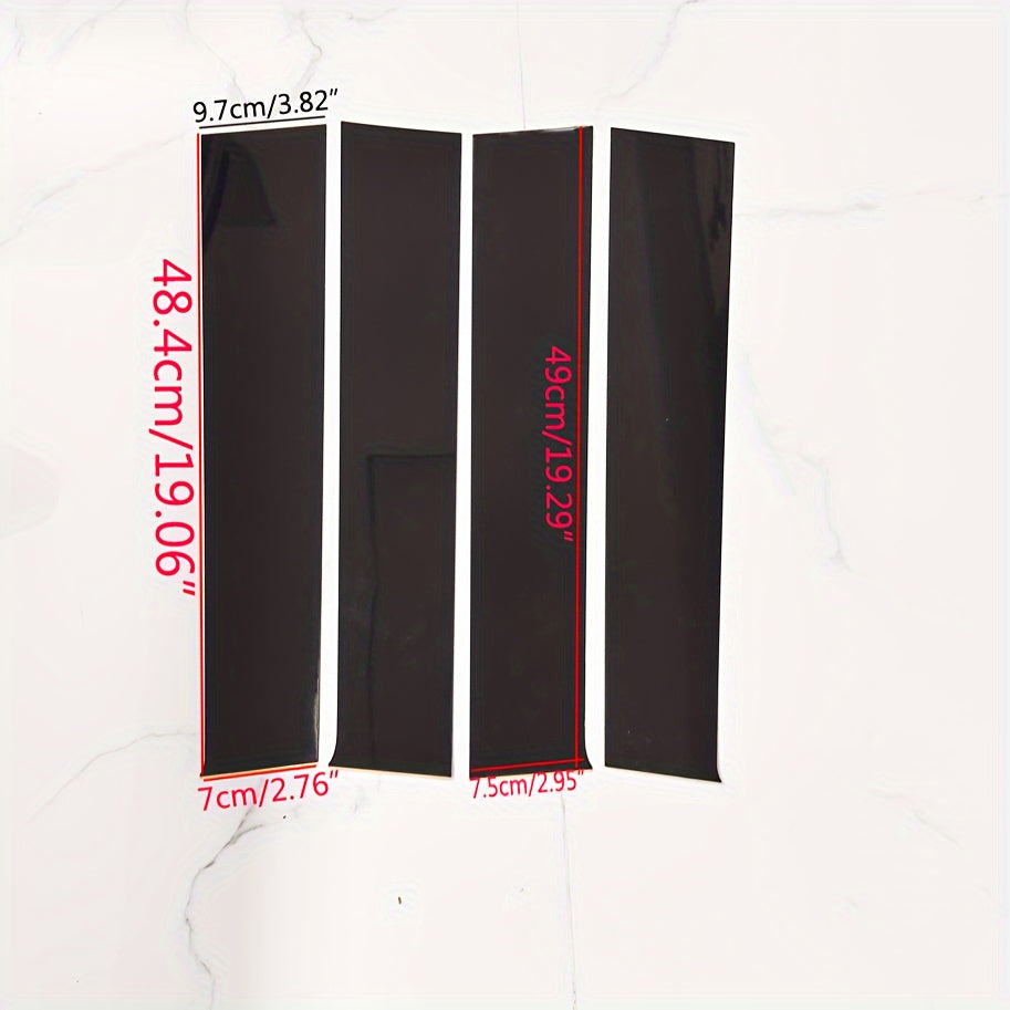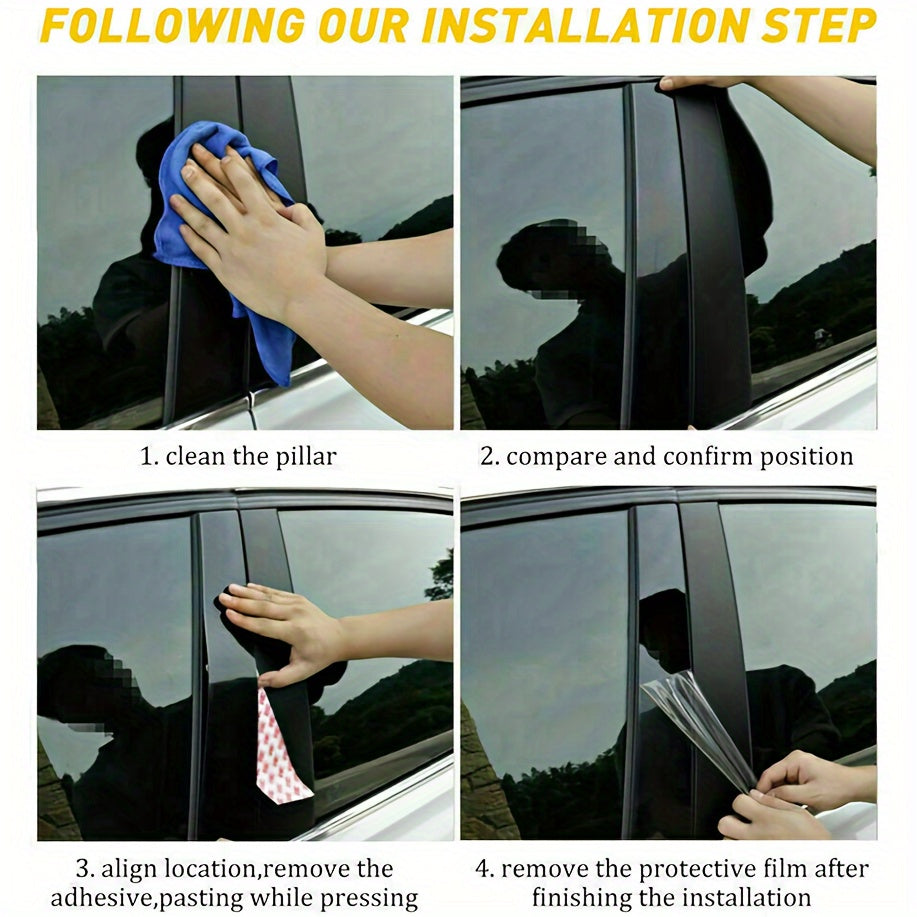 Protected from UV rays to prevent color fading. Suitable for car wash and wax. Enhance the appearance of your vehicle with a sophisticated and unique style. Equipped with pre-applied double-sided tape for effortless installation. No need for alterations, drilling, or cutting. Apply directly without replacing. Installation and maintenance: Quick and simple 15-minute DIY installation. Easy peel-and-stick application without the need for tools. Can be easily cleaned with soap and water. Package includes: 4 pieces.