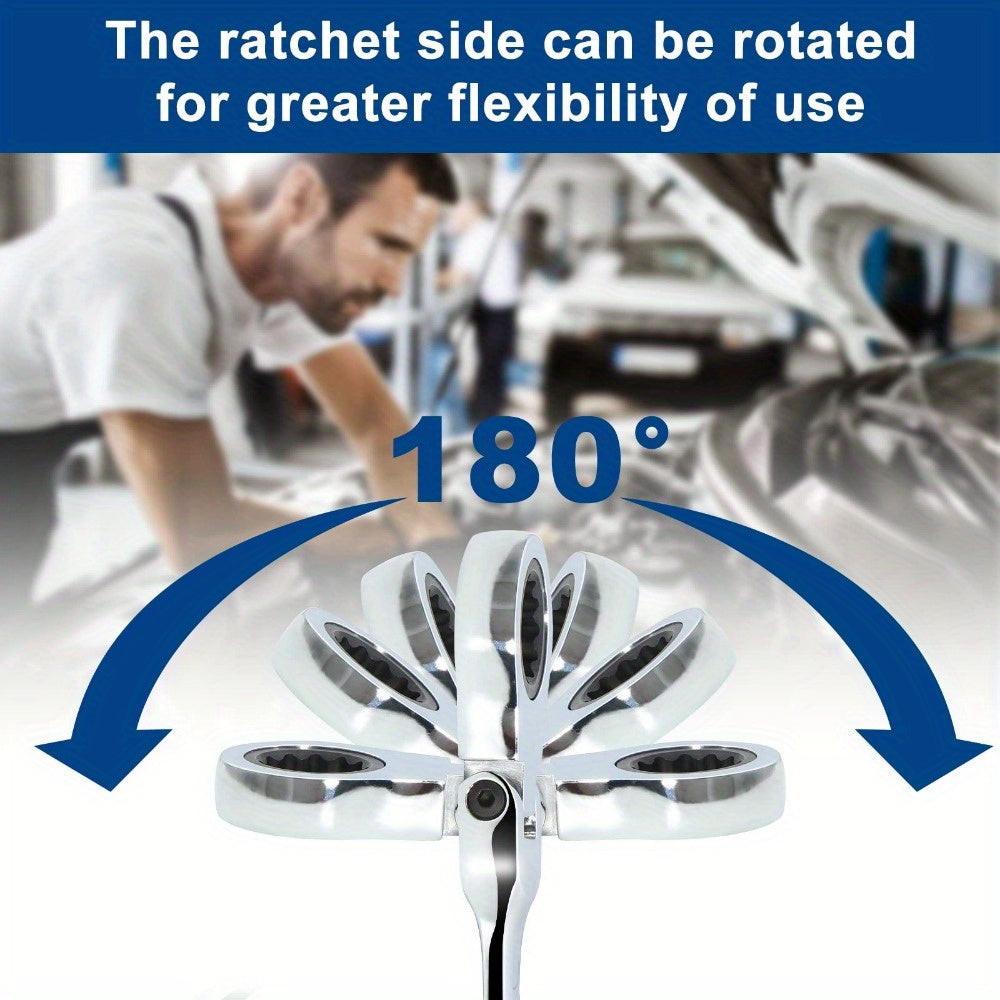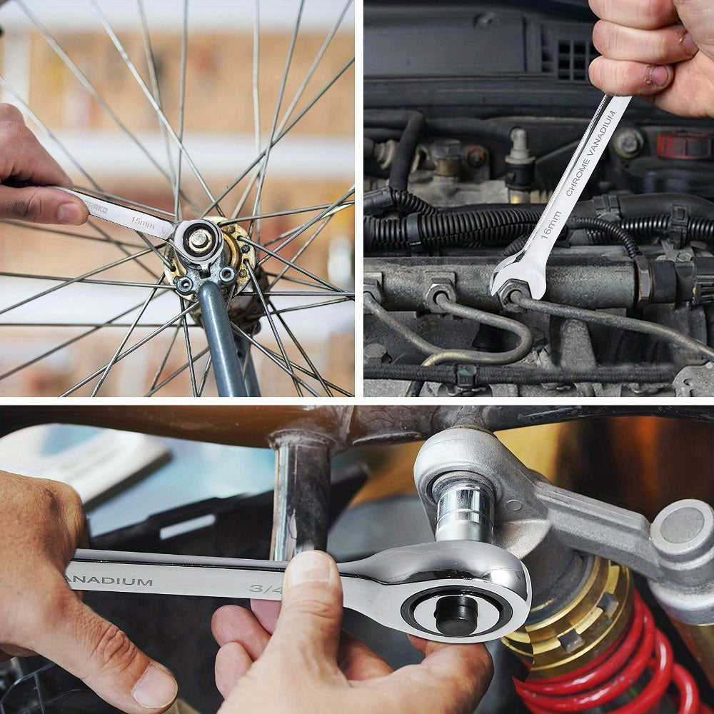 5/ 914pcs Dual Purpose Adjustable Ratchet Wrench Set, Chrome Vanadium Steel, 72 Tooth Gear, 180 Degree Swivel Head, Quick Release Wrench Mechanism, Multi-Purpose Tool Set for Automotive, Household and Electrical Repairs