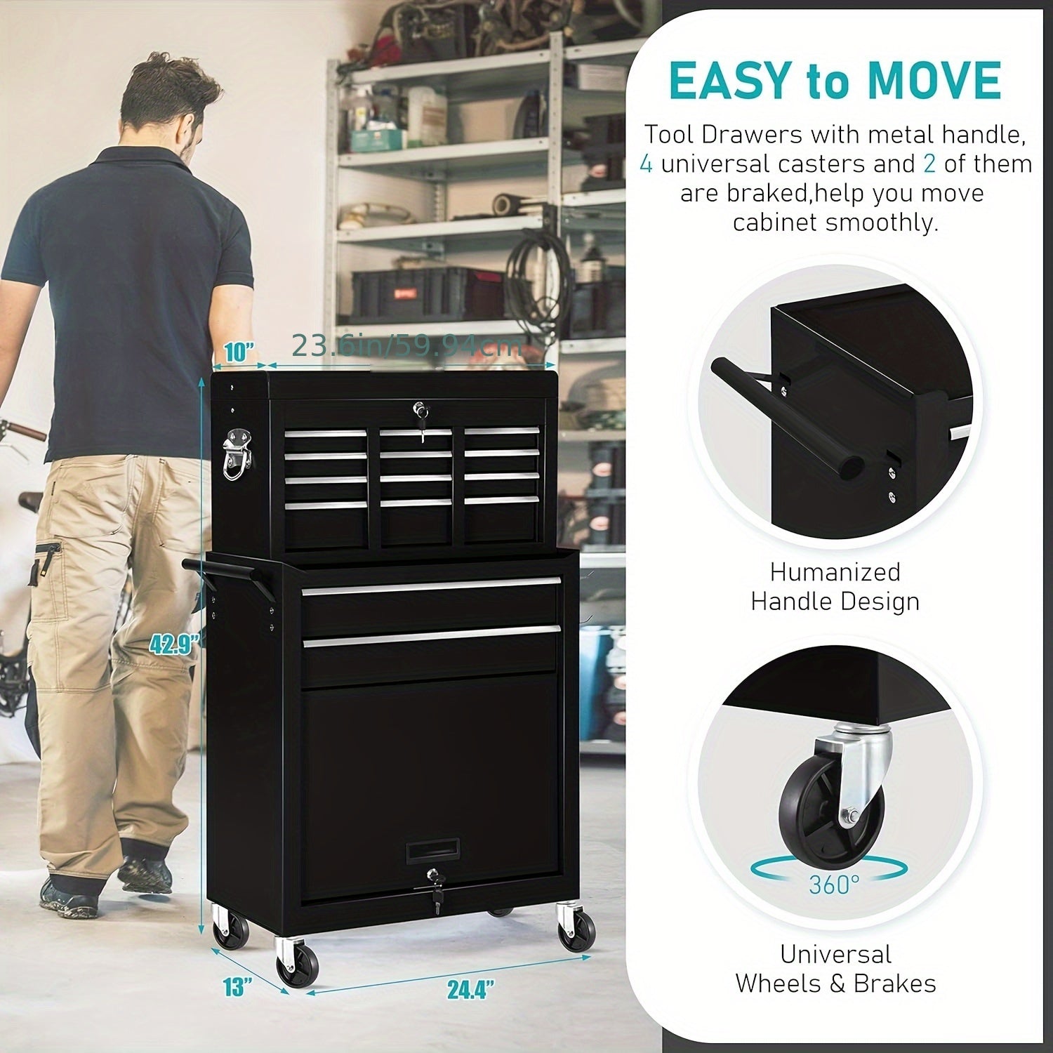 8-Drawer Metal Lockable Tool Chest Cabinet with Wheels, Black Storage Drawer Units, Rolling Tool Storage Box