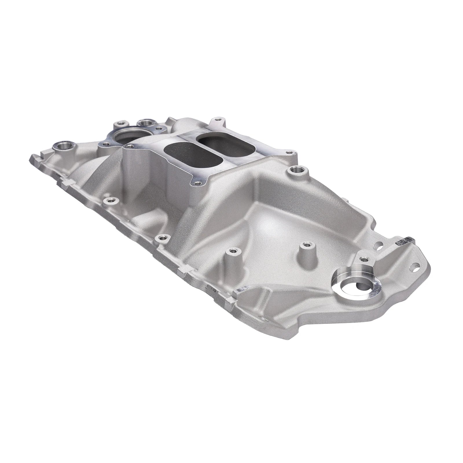 cubic-inch Chevys. Dual-plane, low-rise design with a 180-degree firing