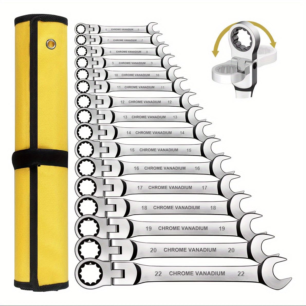 Flex Head Ratcheting Wrench Set, Combination Ended Spanner Kits, Chrome Vanadium Steel Hand Tools Socket Key Ratchet Wrench Set