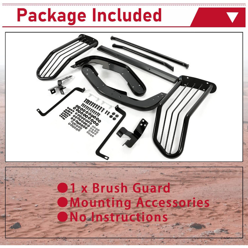 · Package Included: Brush guard. Mounting accessories. No instructions. Easy to install, installation method: Screw. Professional installation is highly recommended!