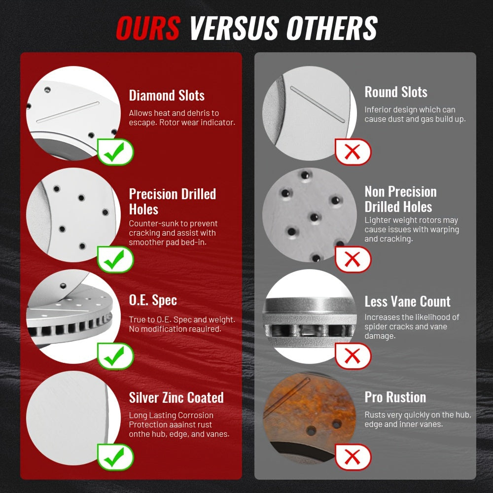 Front Drilled Brake Disc Rotors + Ceramic Brake Pads Kit For Chevrolet Equinox 2010 - 2017, For Chevrolet Impala 2017 - 2020, For Gmc Terrain 2010 - 2017, For Buick Allure 2010