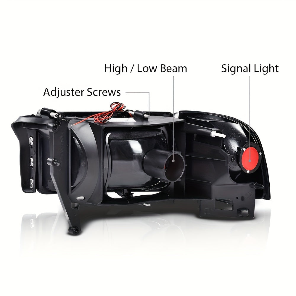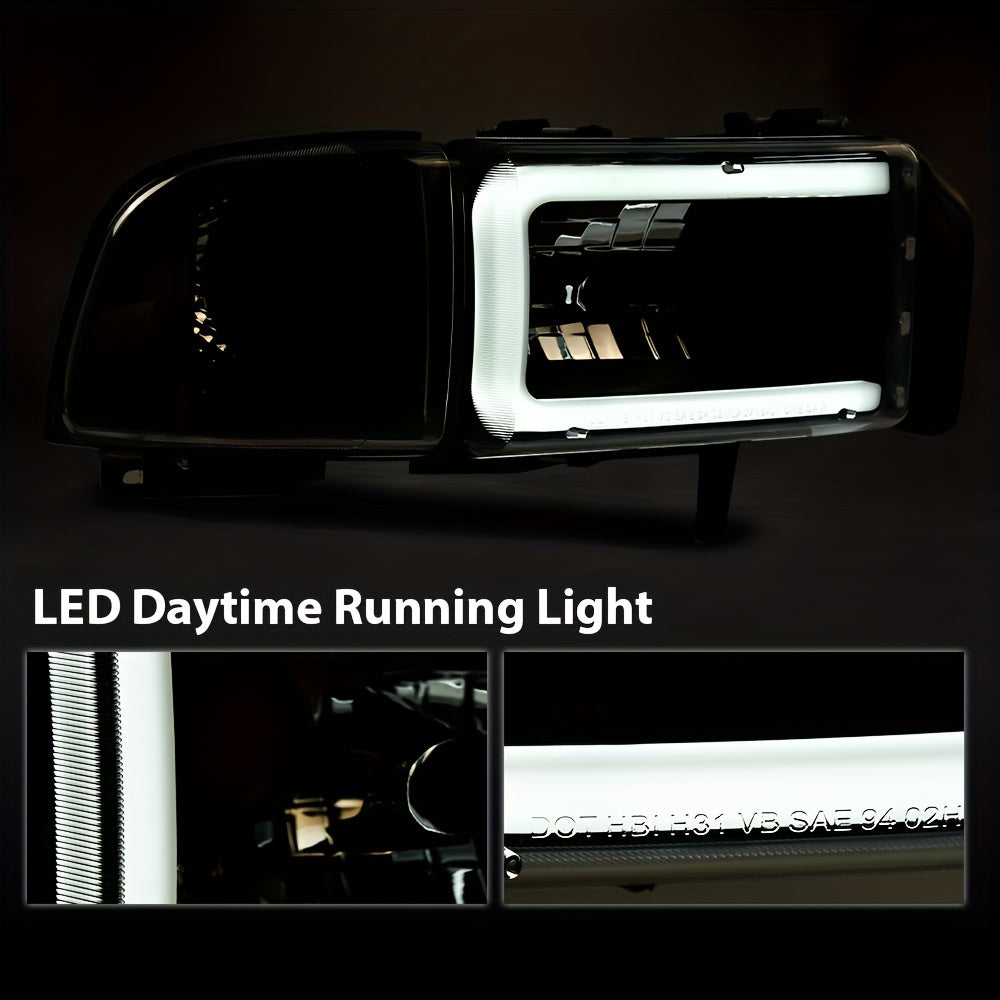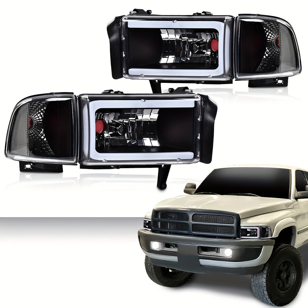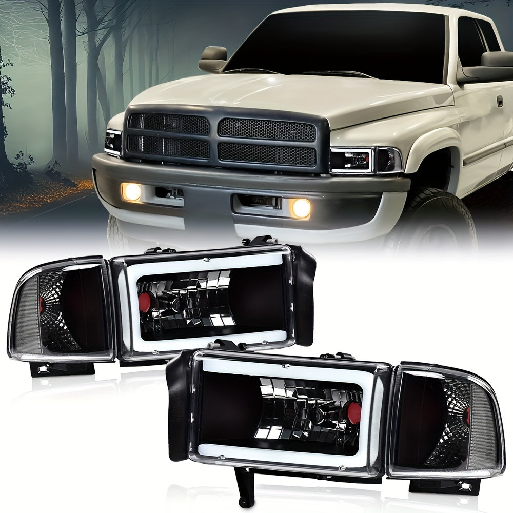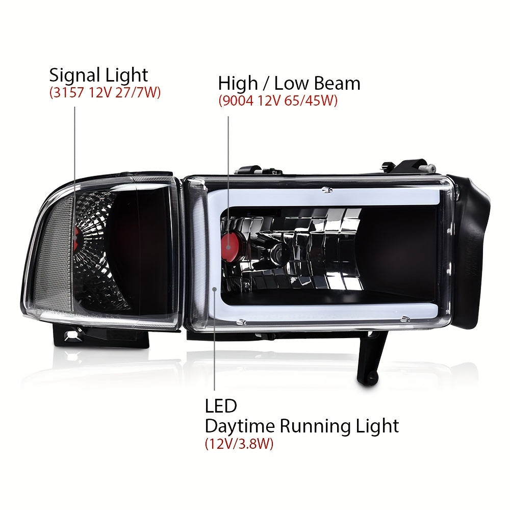LED Light Strip Headlight W/o Bulbs Fit For Dodge For Ram 1500 1994-2001 For Dodge For Ram 2500 For 3500 1994-2002 Clear Lens Black Housing Clear Reflector