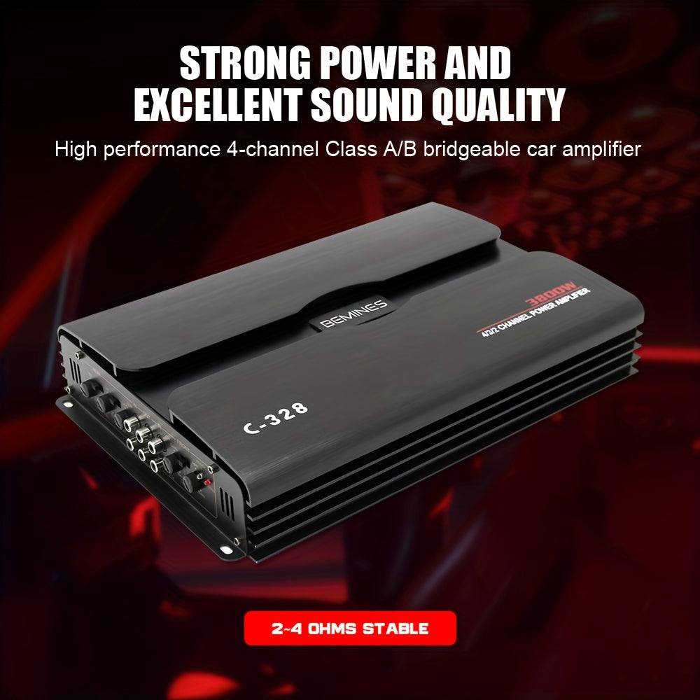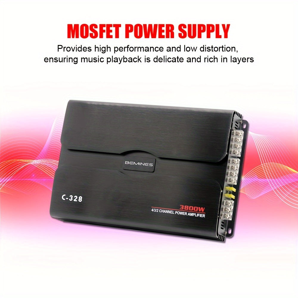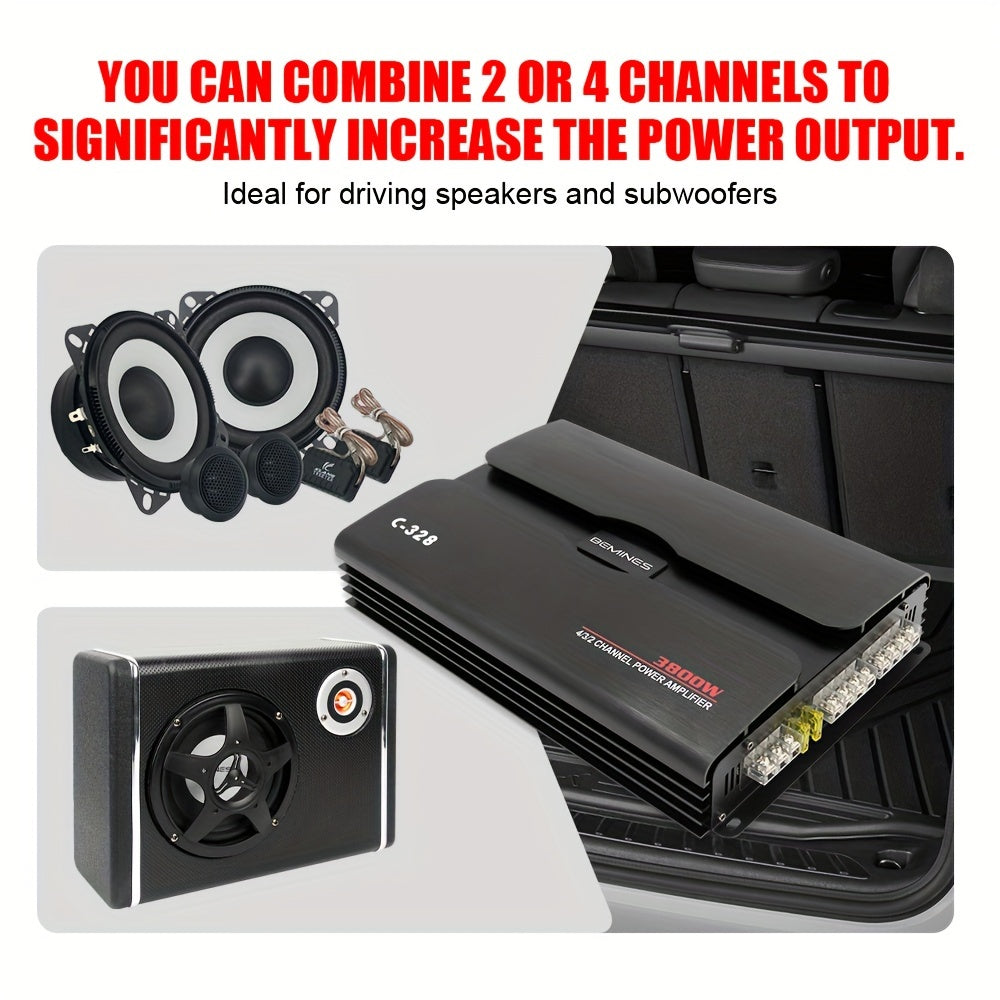 MAX.3800W 4-channel Class A/B Car Stereo Amplifier, RMS.4*80W High Output, 2/4 Ohm Stable, High/low Level Input, Bridgeable, Good Heat Dissipation, Improved Sound Quality, Suitable For Speakers And Subwoofers