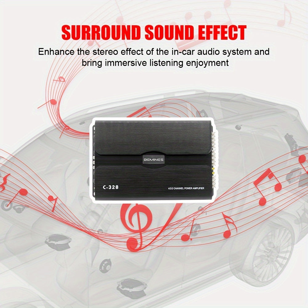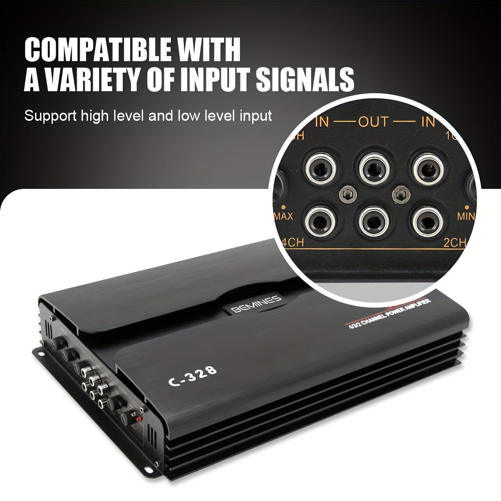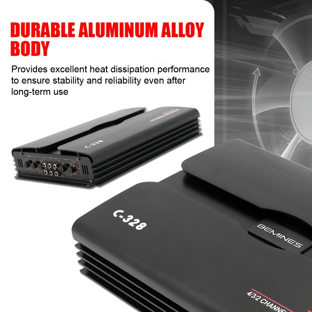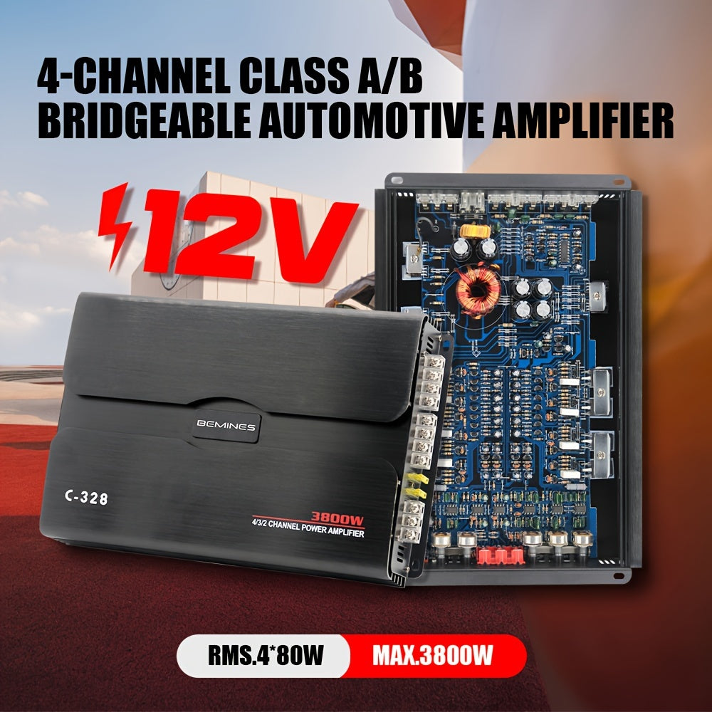 MAX.3800W 4-channel Class A/B Car Stereo Amplifier, RMS.4*80W High Output, 2/4 Ohm Stable, High/low Level Input, Bridgeable, Good Heat Dissipation, Improved Sound Quality, Suitable For Speakers And Subwoofers