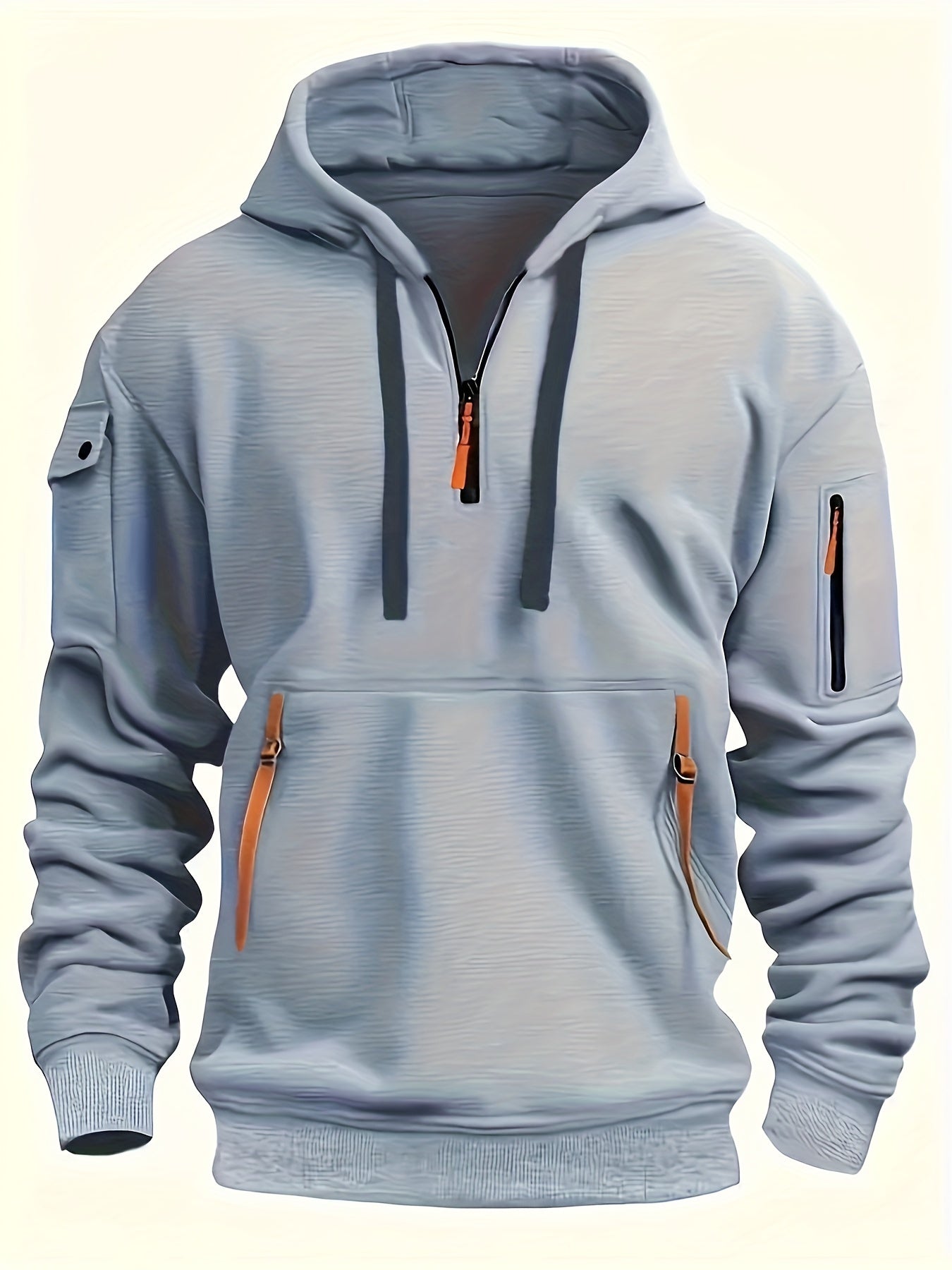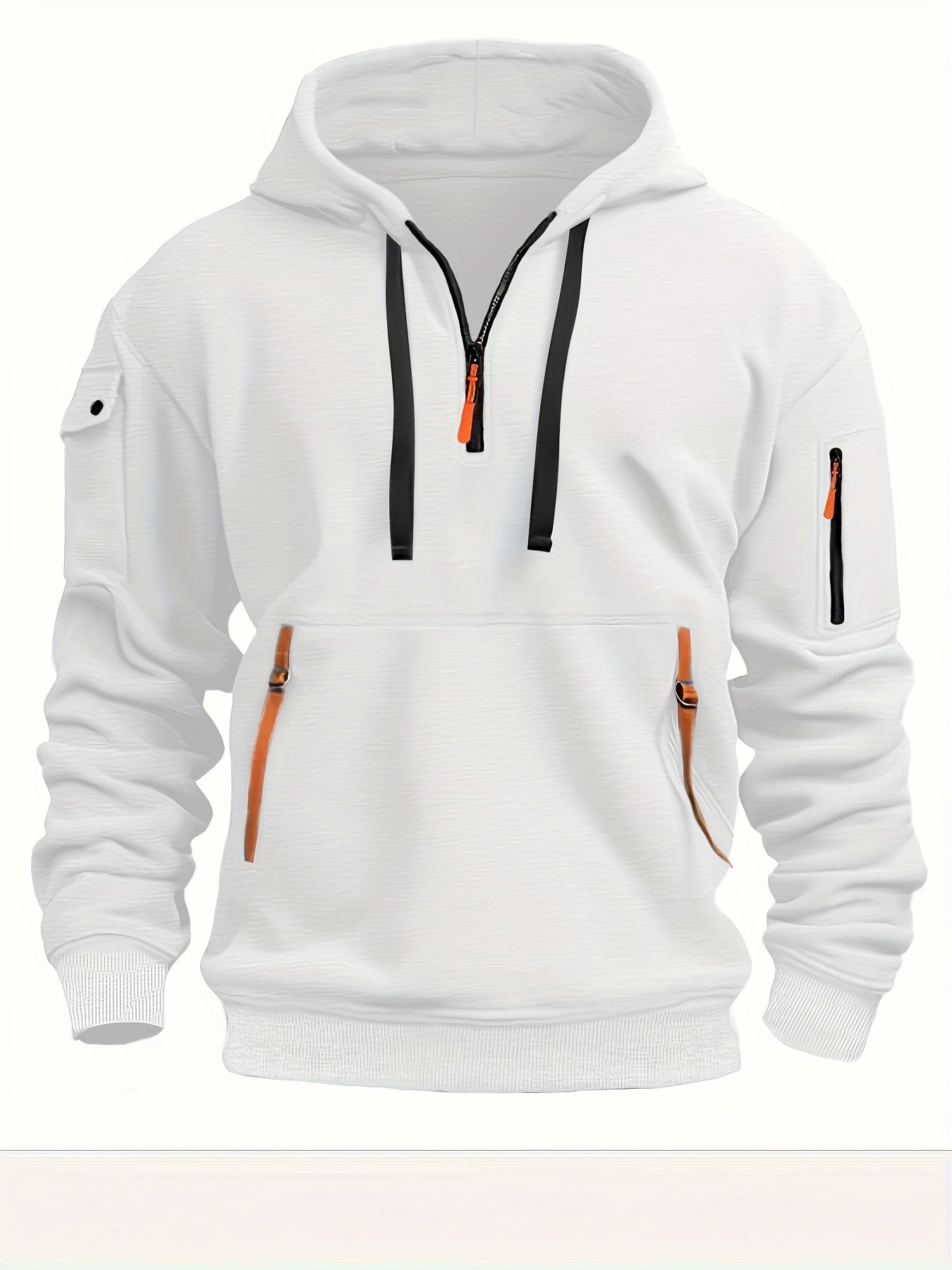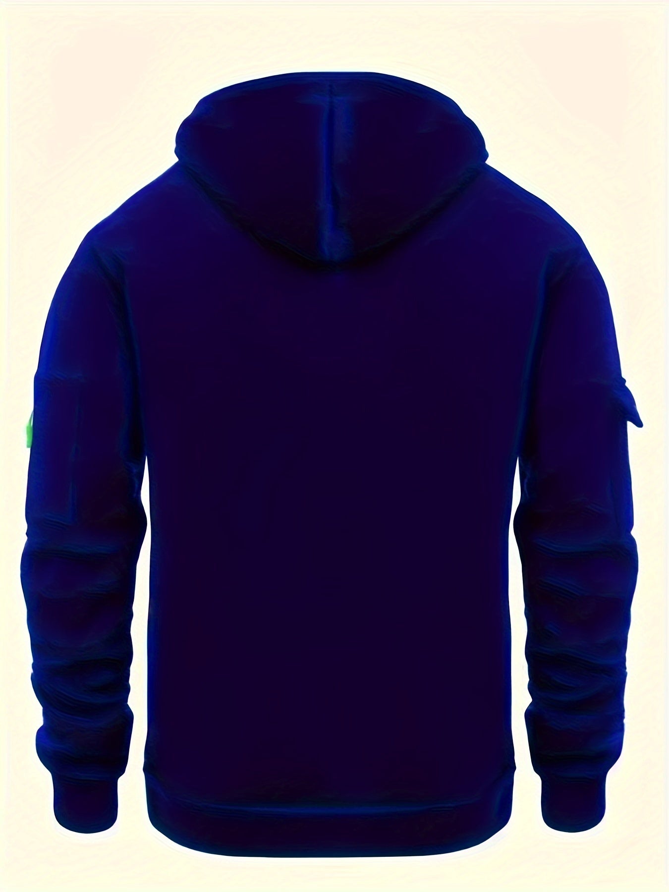 Men's Hooded Active Sweatshirt with Arm Pocket Zip Details - 100% Polyester Sports Style Pullover - Solid Color, Regular Fit Long Sleeve with Slight Stretch Knit Fabric