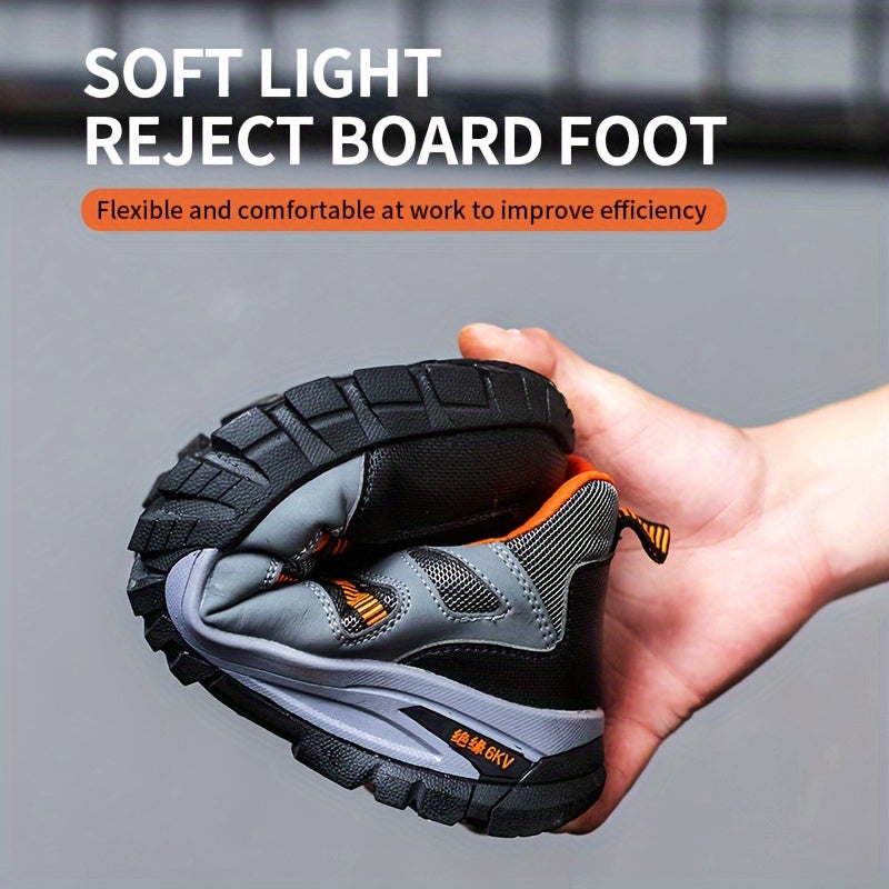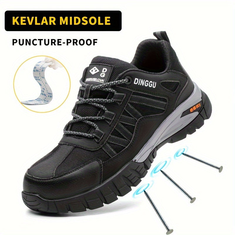 Men's Puncture-proof And Anti-slip Steel Toe Outdoor Rubber Soles Breathable Industrial Building Protective Shoes Deodorizing Soft-soled Labor Lightweight Flying Woven Men's Wear-resistant Lace Men's Anti-slip Kevlar Soft-sol
