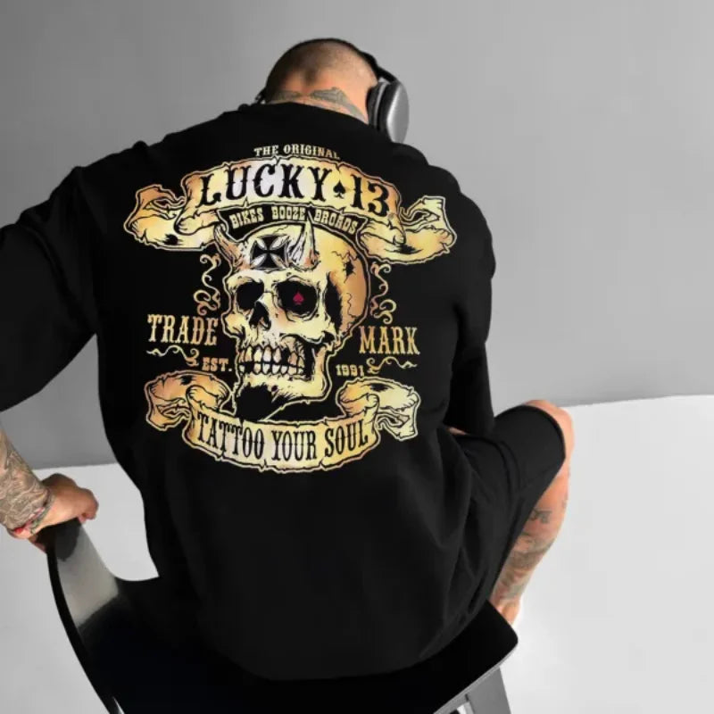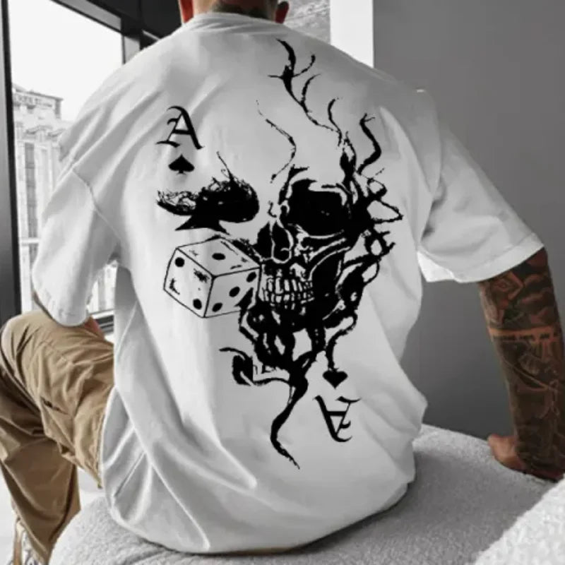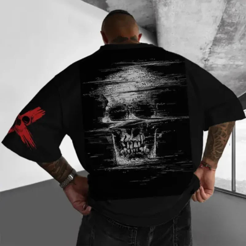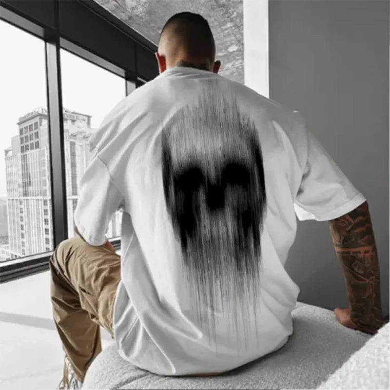 New Y2K Style Skull Metal Print Harajuku Retro Street Style Men's T-shirt Printed Casual Round Neck Short Sleeved T-shirt