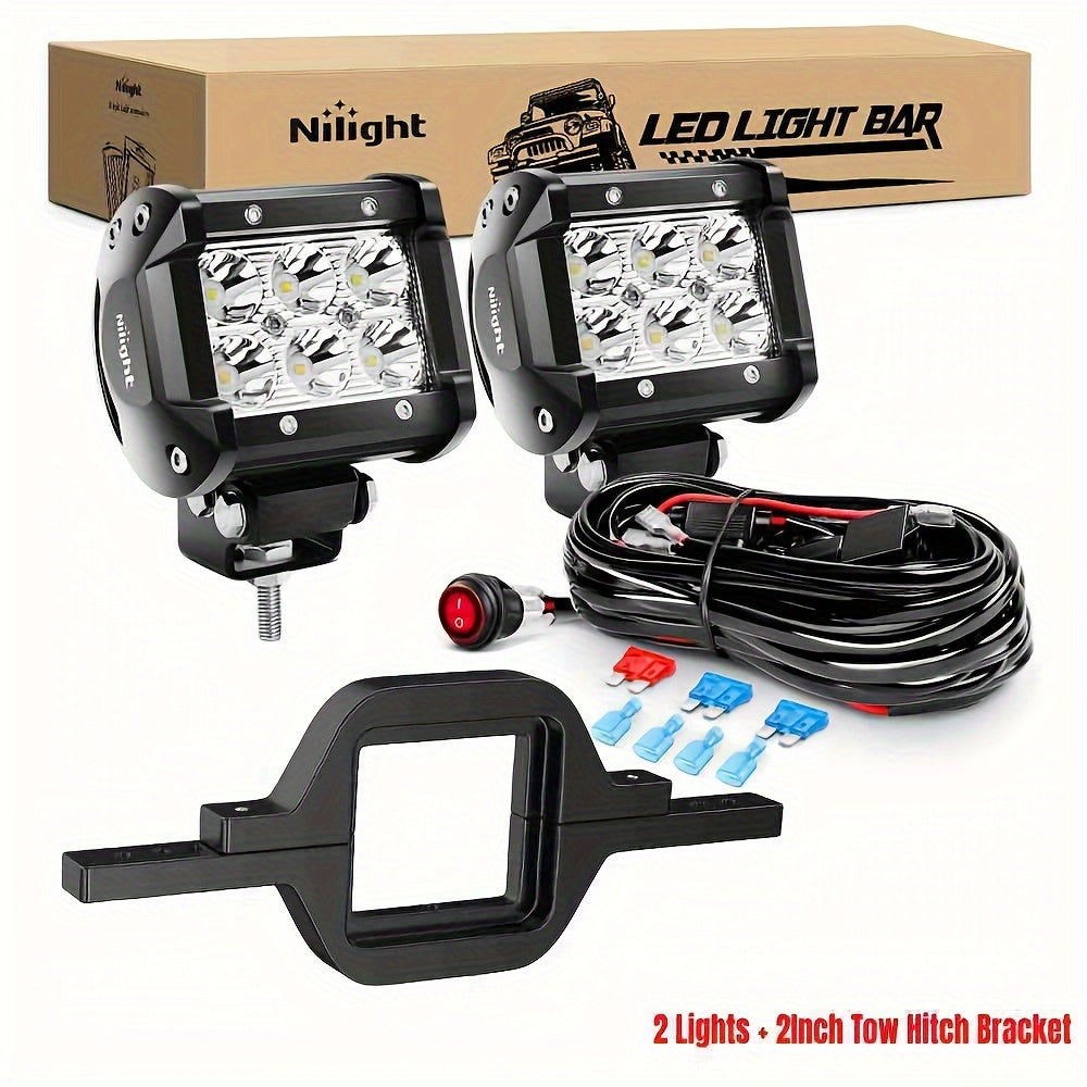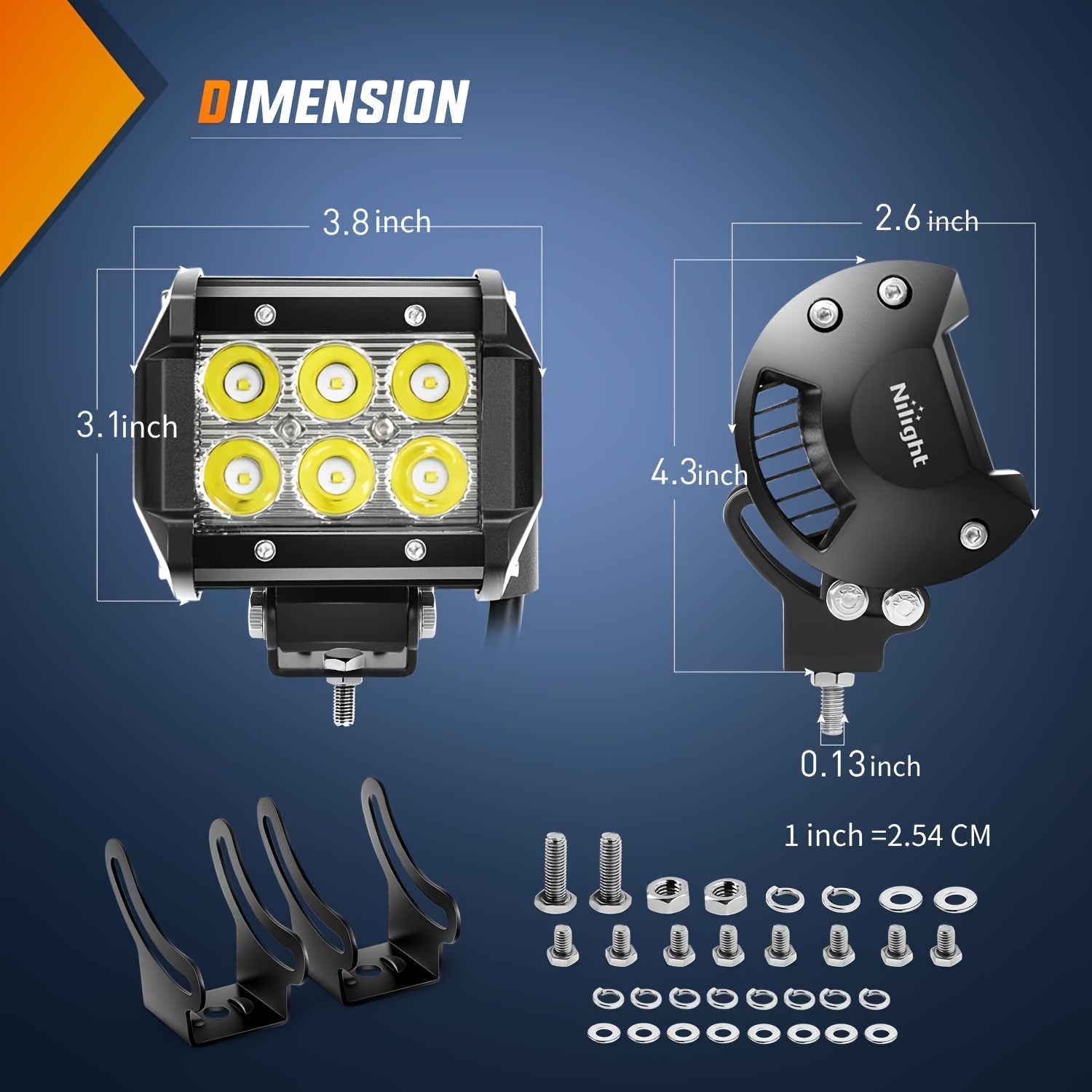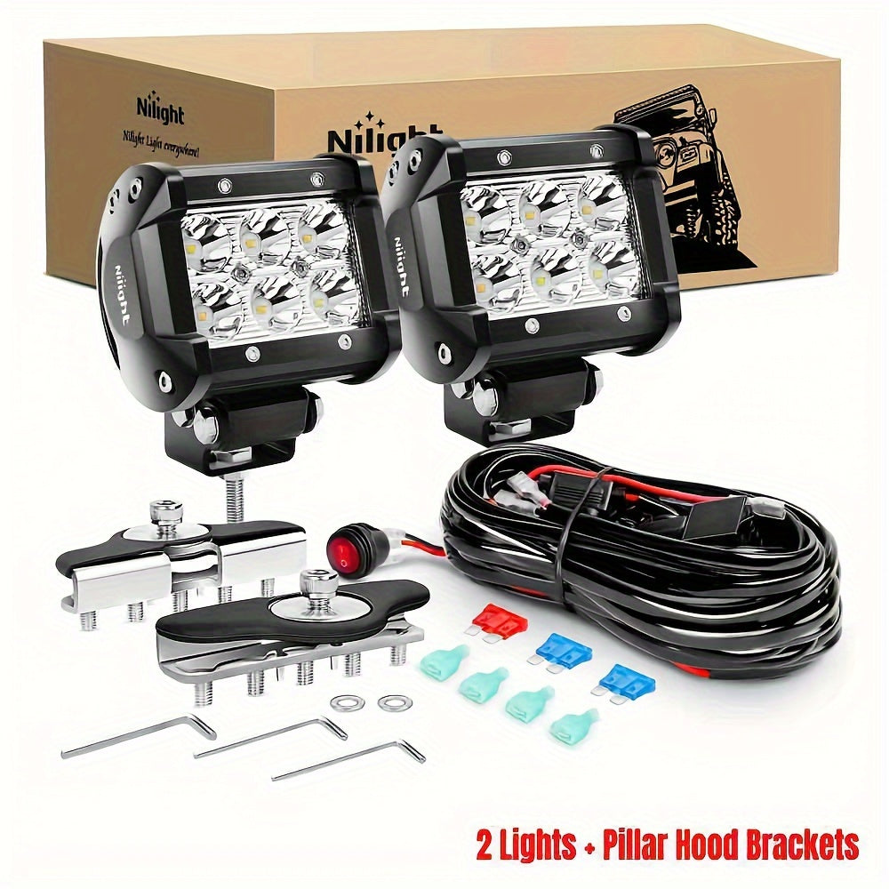 Nilight TZ-109 LED Light Bar 2PCS 18W Off Road Lights with 16AWG Wiring Harness Kit-2 Lead for Trucks Jeep UTV ATV Marine Boat