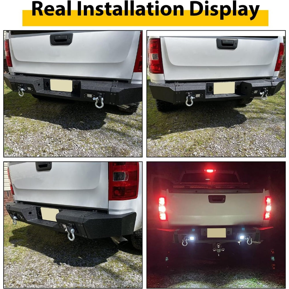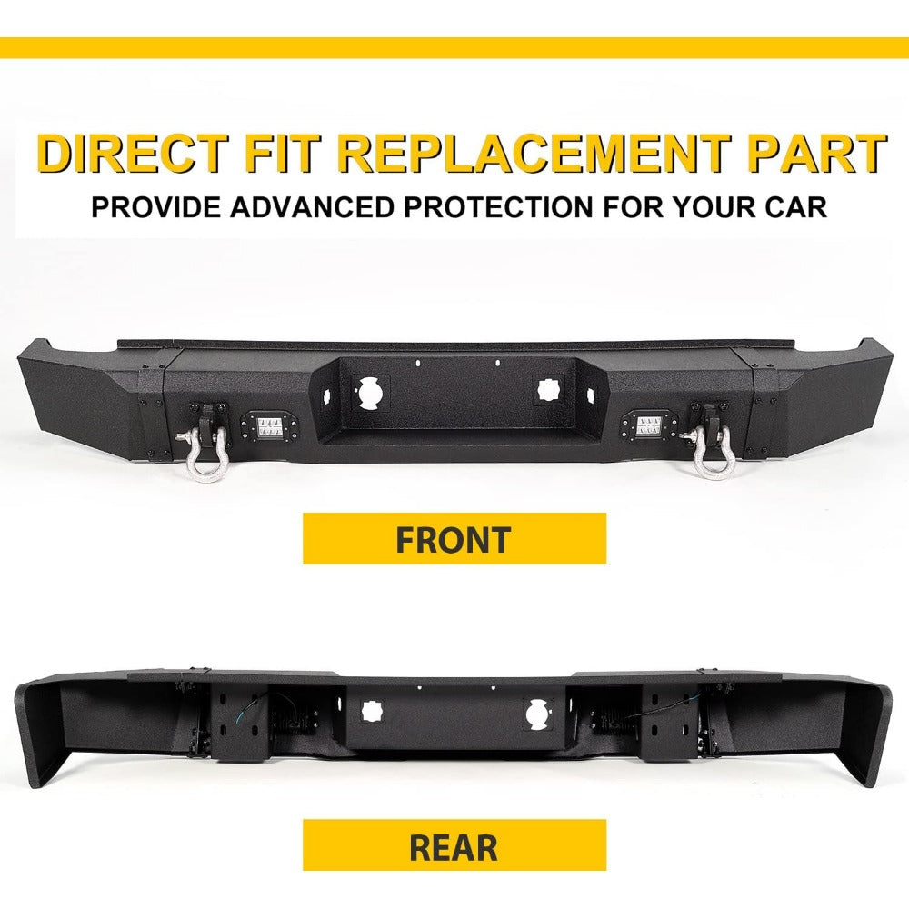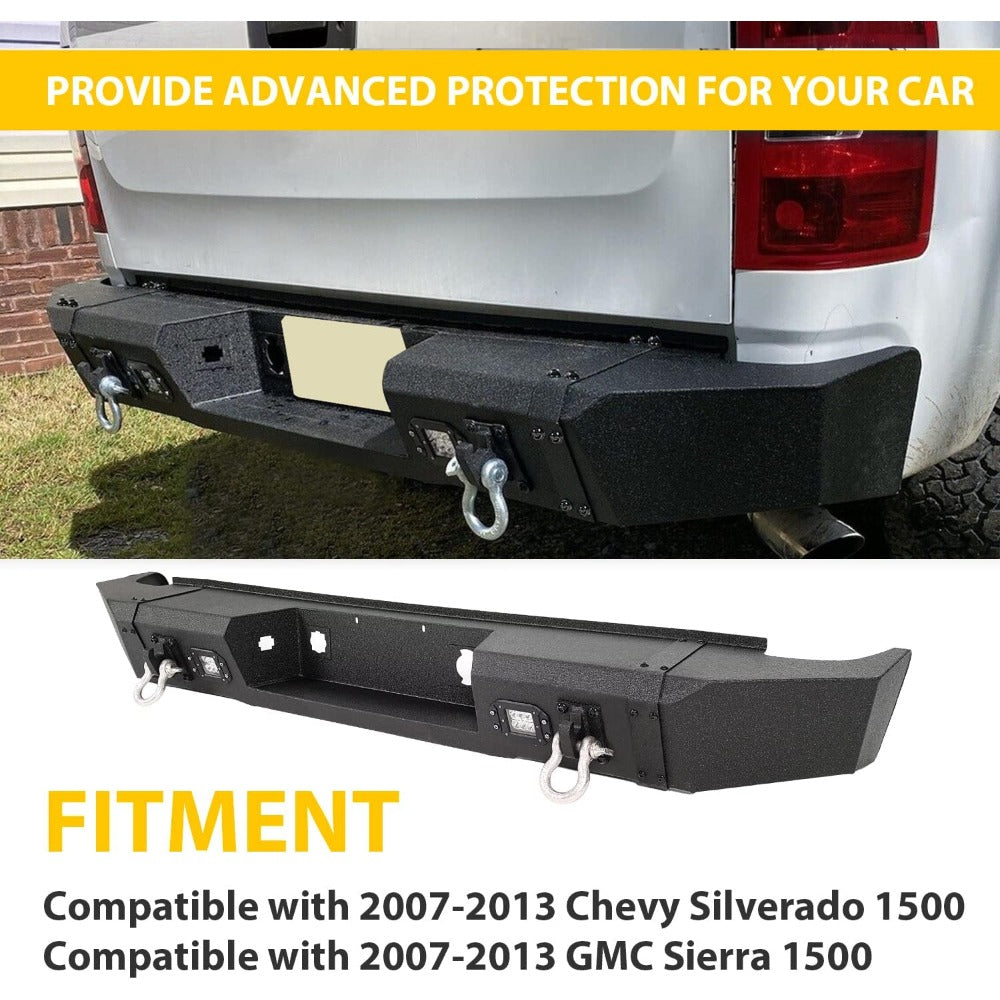Rear Bumper Compatible with 2007-2013 Chevy Chevrolet S Series GMC Sierra 1500 W2 LED Lights D-rings Powder Coated Steel Black