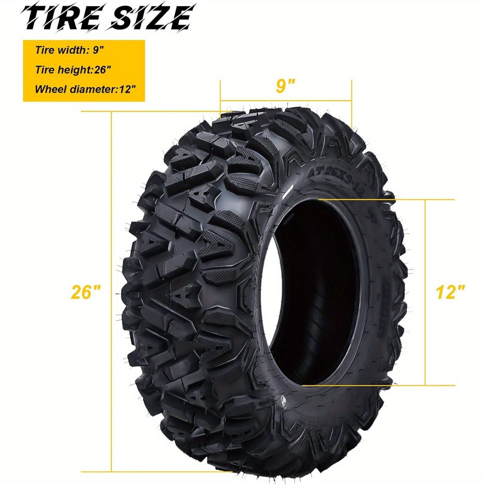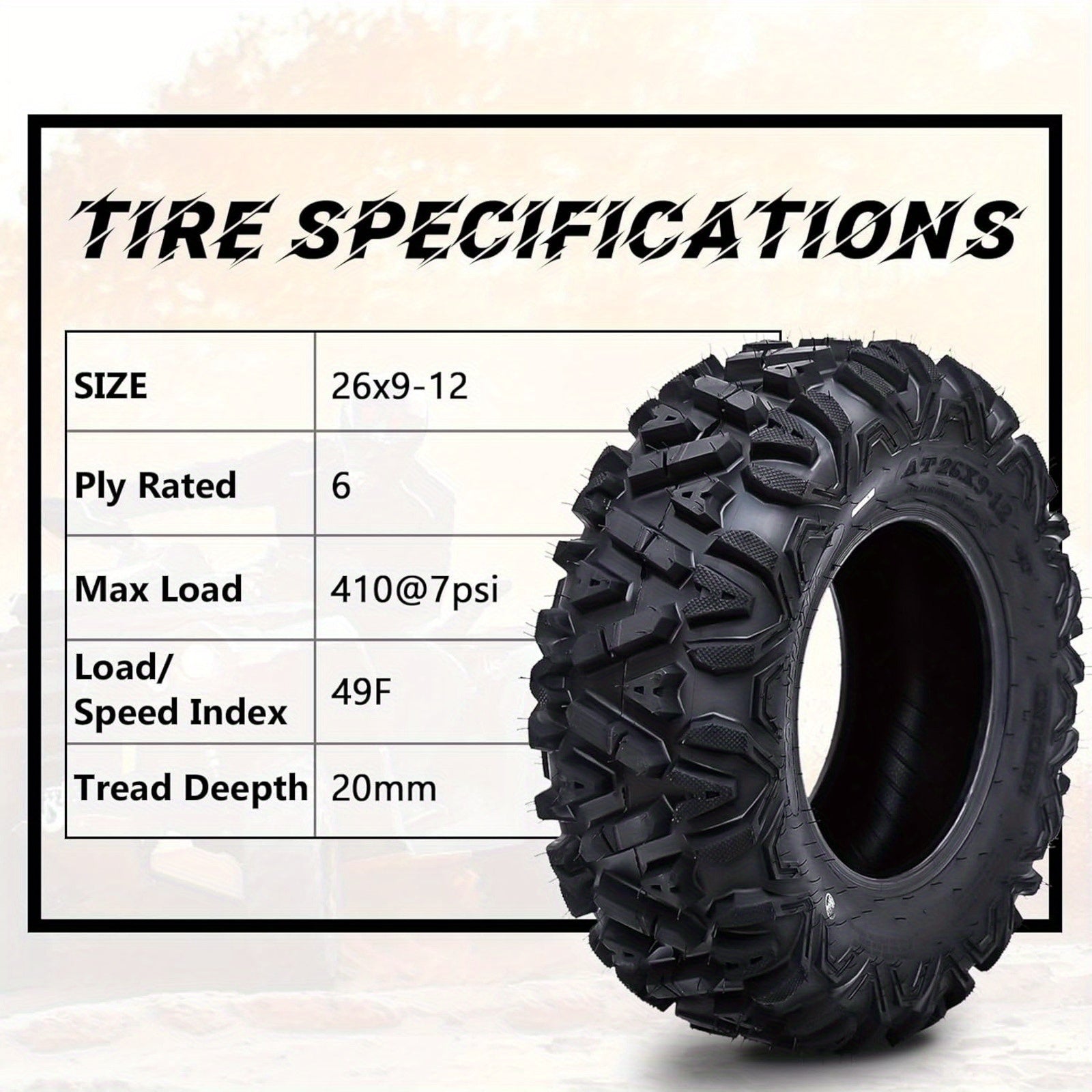 Set of 2, 26x9-12 ATV/UTV Tires, All Terrain Tubeless Tires, 6PR, 49F Load/Speed Index All Terrain Off-Road Tires