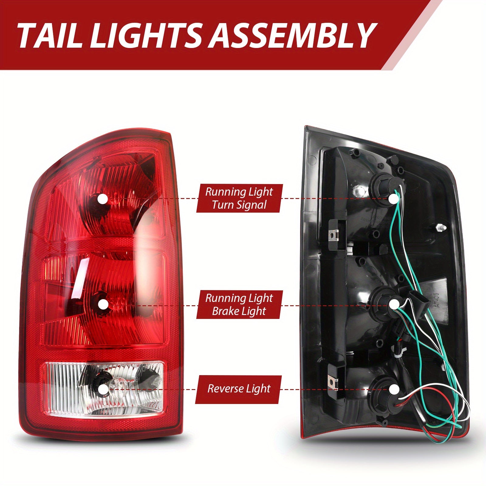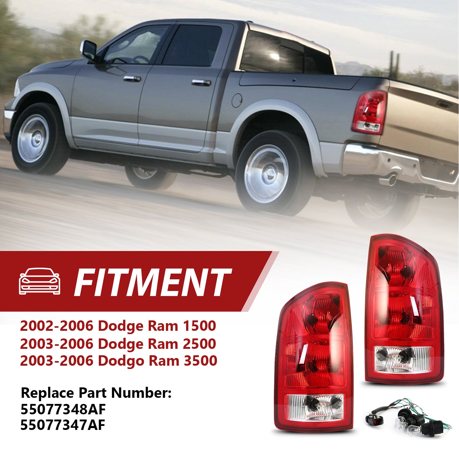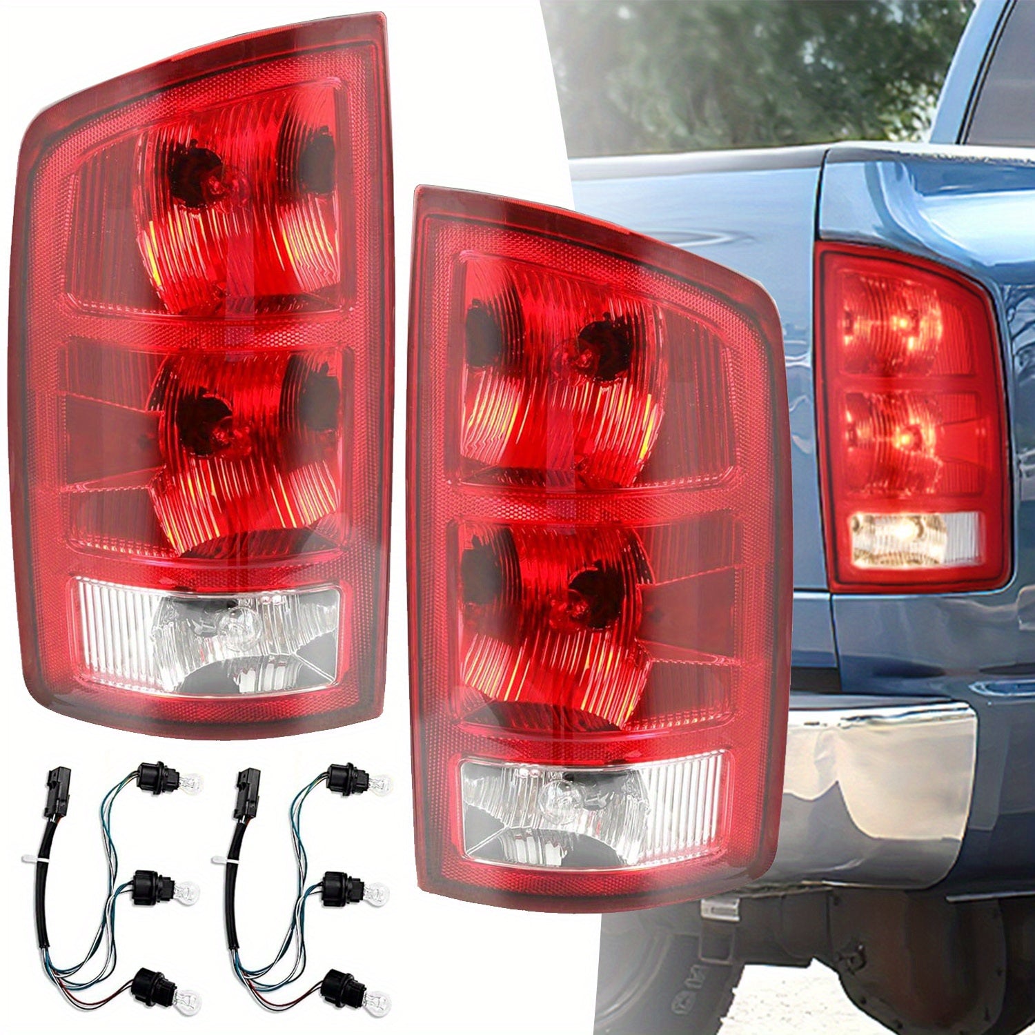 Tail lights for dodge ram 2002-2006, Red Housing+ Chrome Lens (No Bulbs) Halogen Tail light
