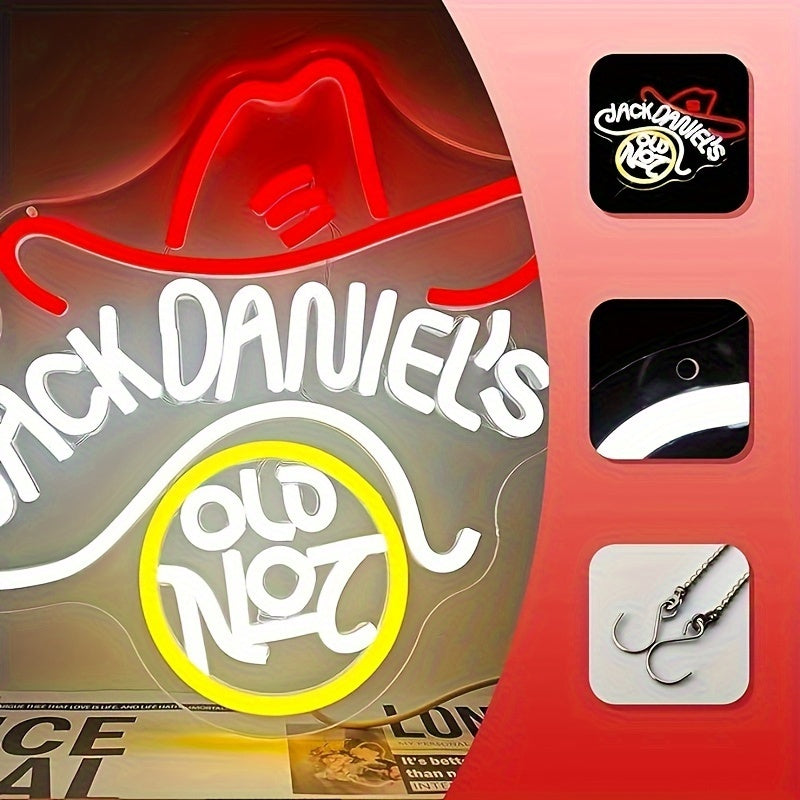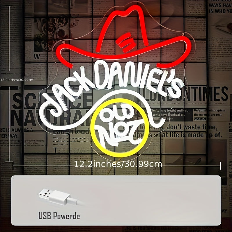 USB Powered Dimmable Led Neon Cowboy Hat Sign - Wall Decor Light For Home Bar, Club, Office, Or Man Cave